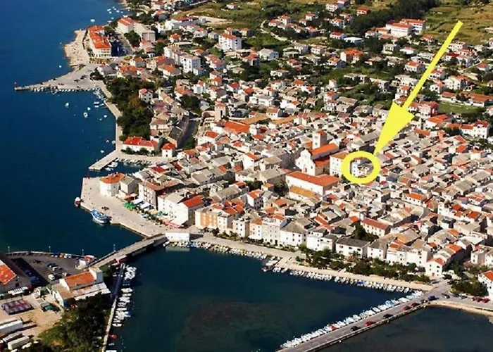 Apartments With A Parking Space Pag - 22601 パグはCenter for Culture and Information PAGから0.9kmに位置し,宿泊施設中ののWi-Fi付きの客室を提供しています. アパ-トメントには冷蔵庫 とキッチン用品と一緒に台所が備わっています.